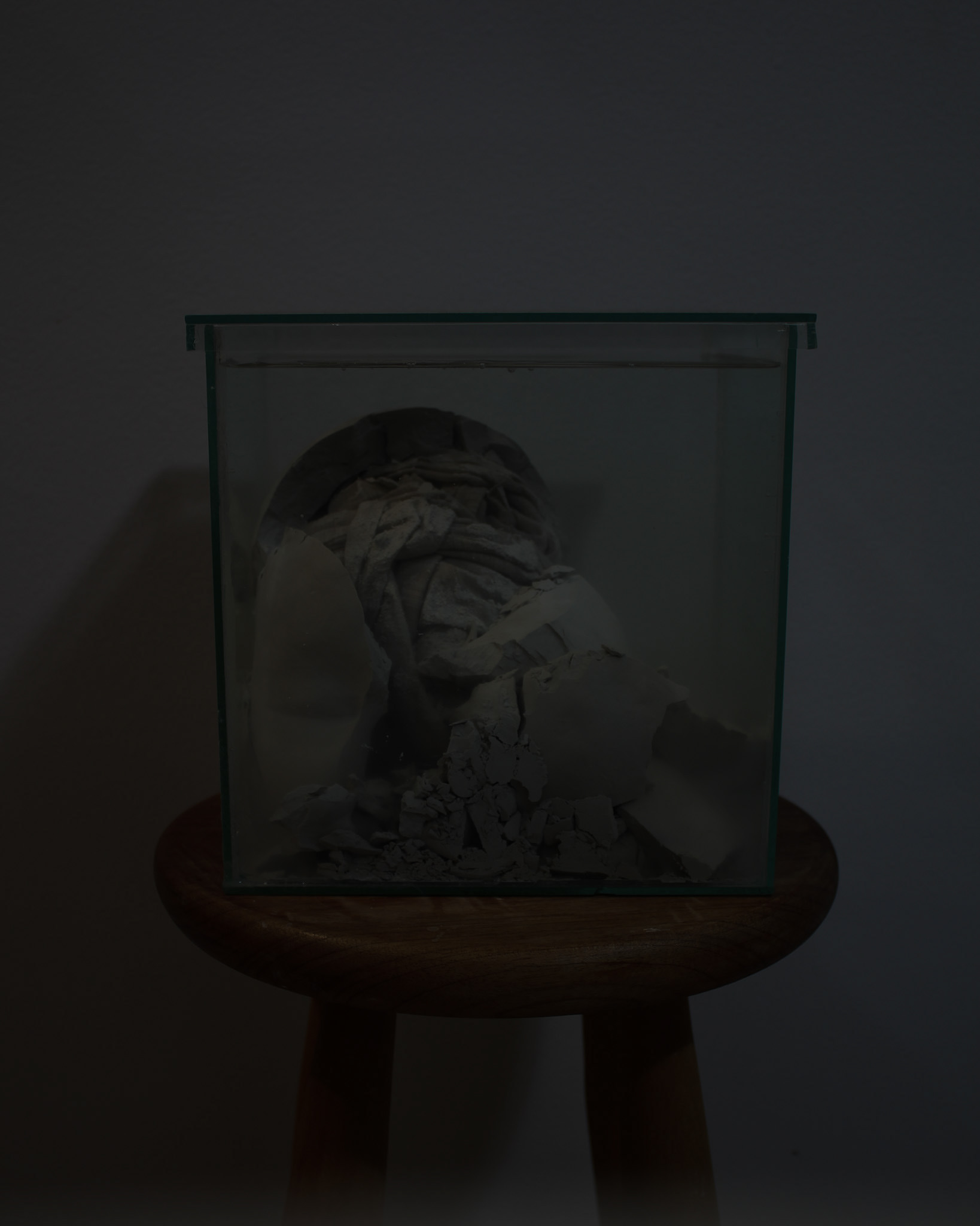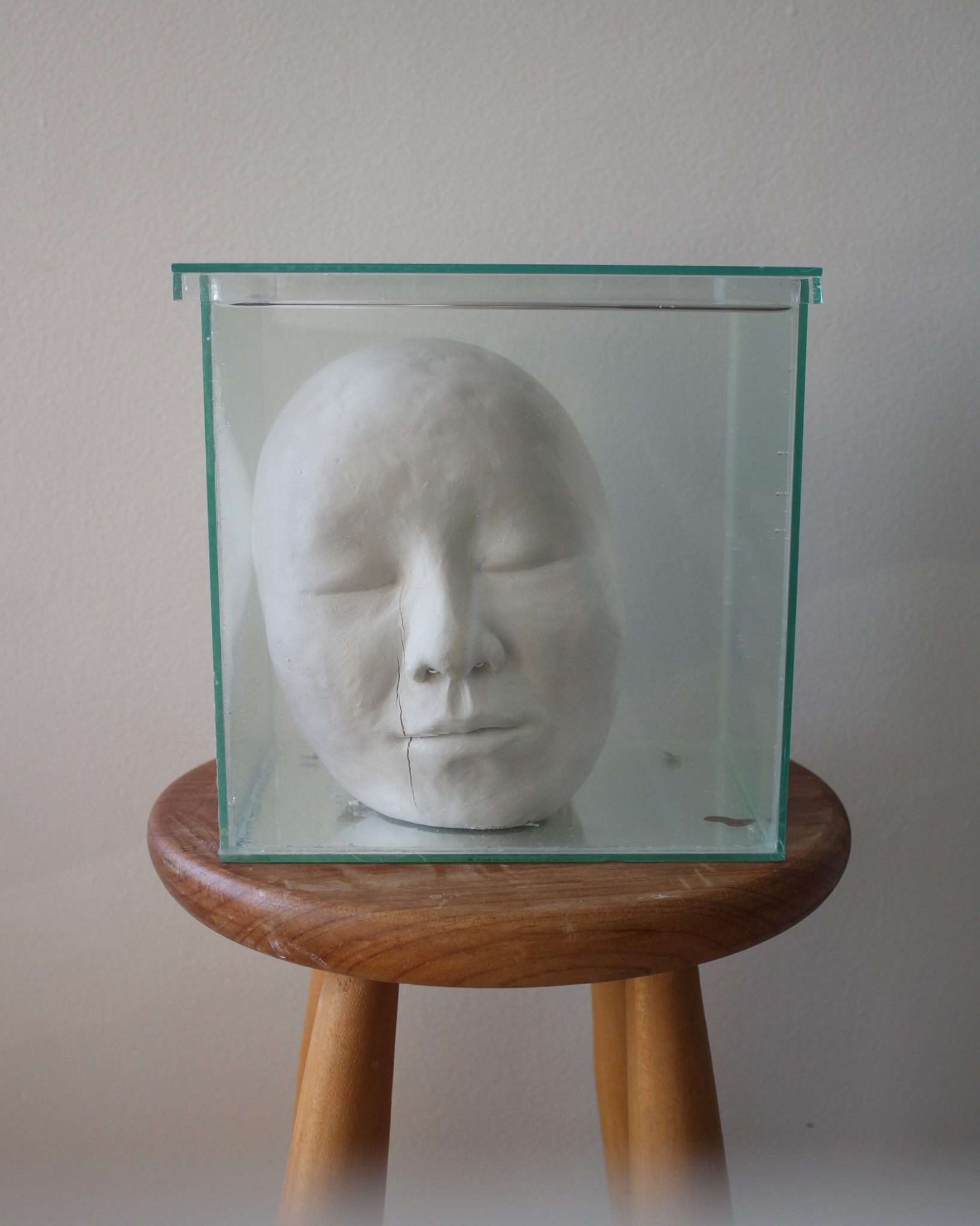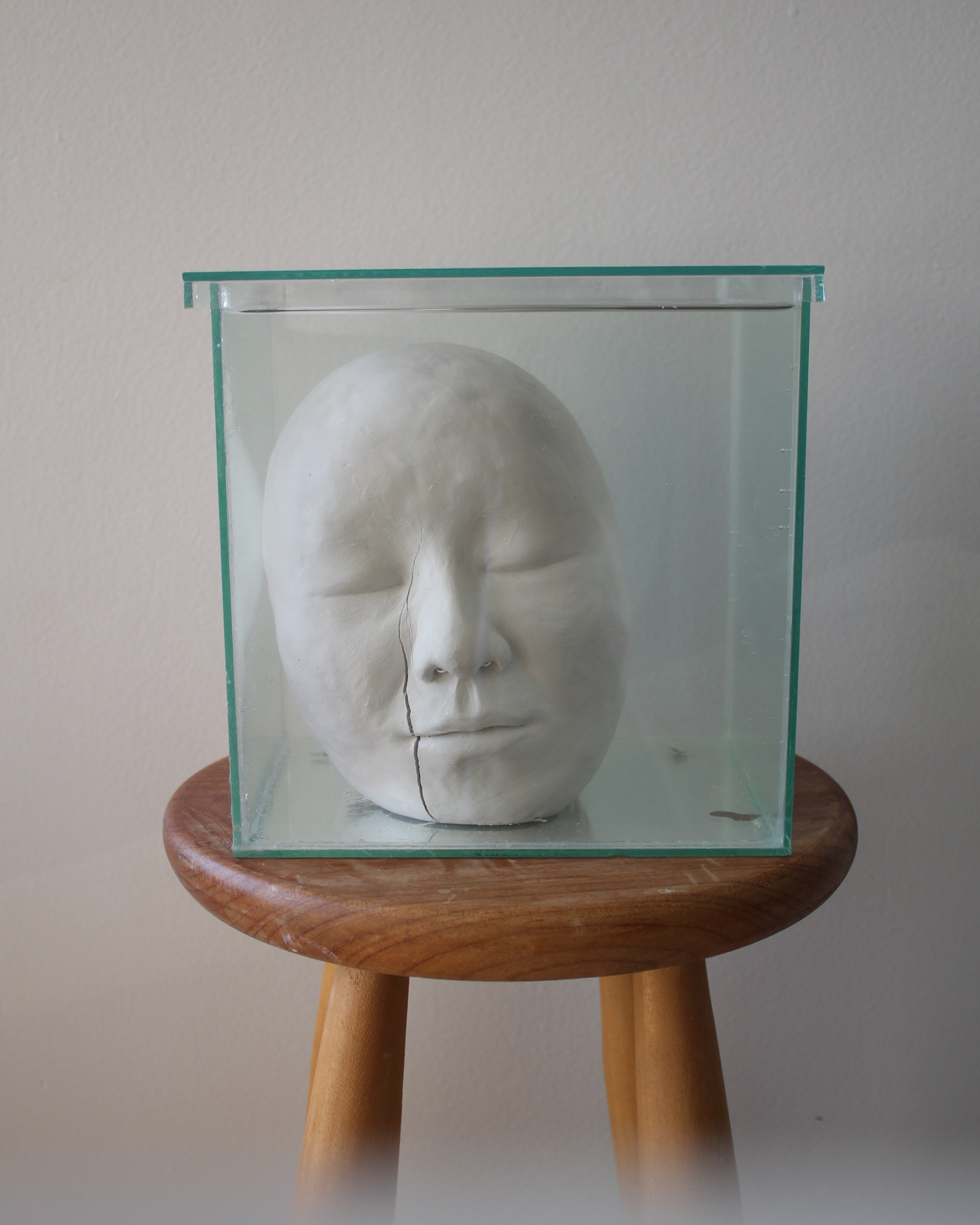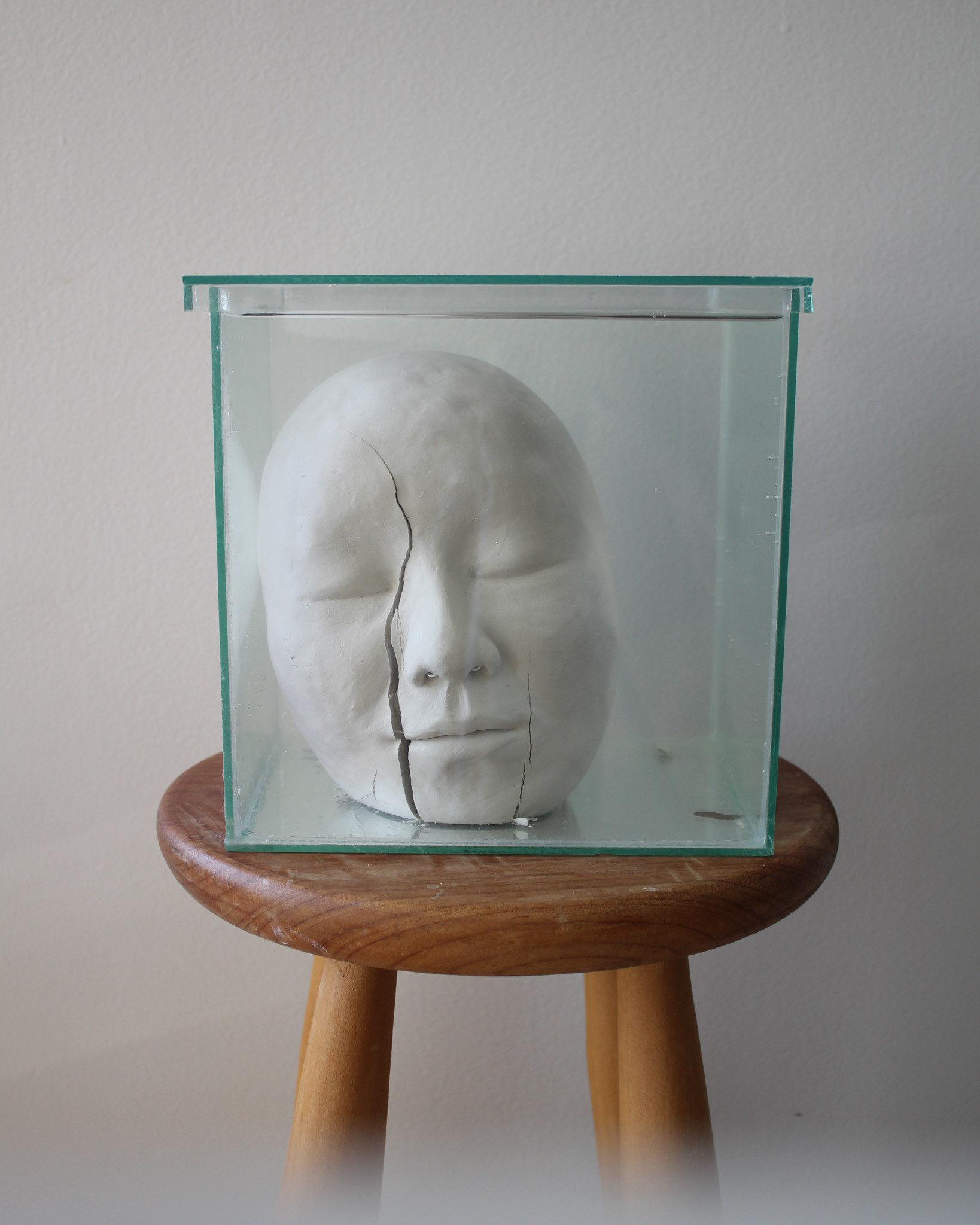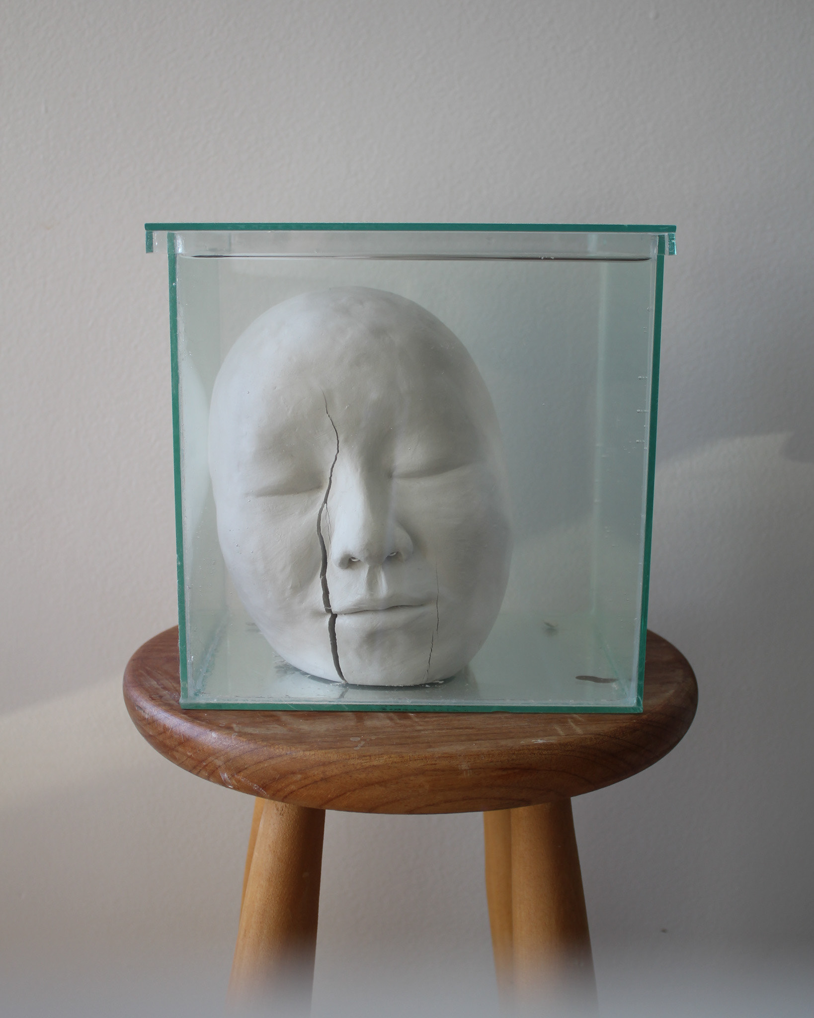 Série de fotografias realizada com registro de escultura de porcelana dissolvida em água. Caixa de vidro utilizada como recipiente. Impressão sobre canvas, 110 cm, 62 cm