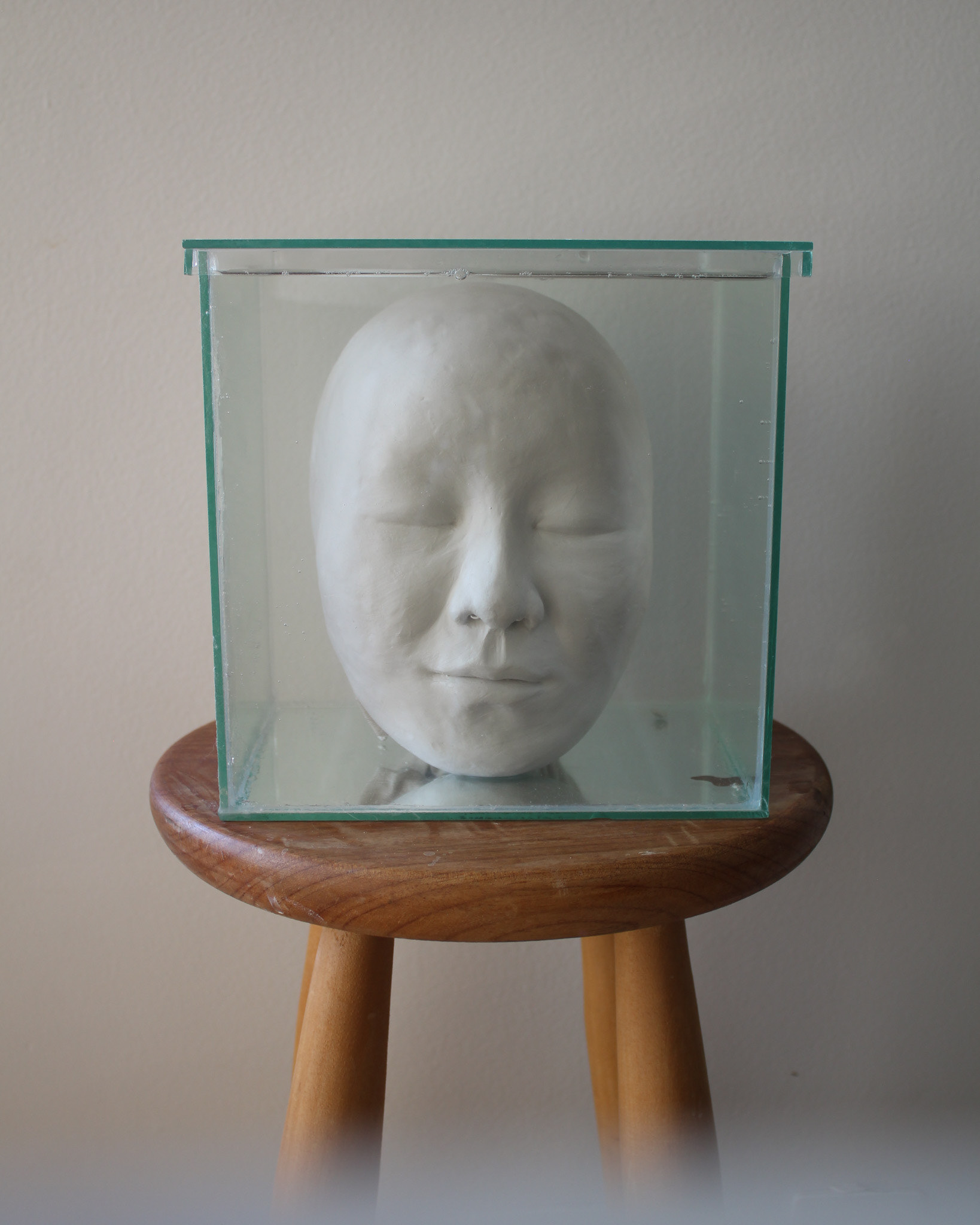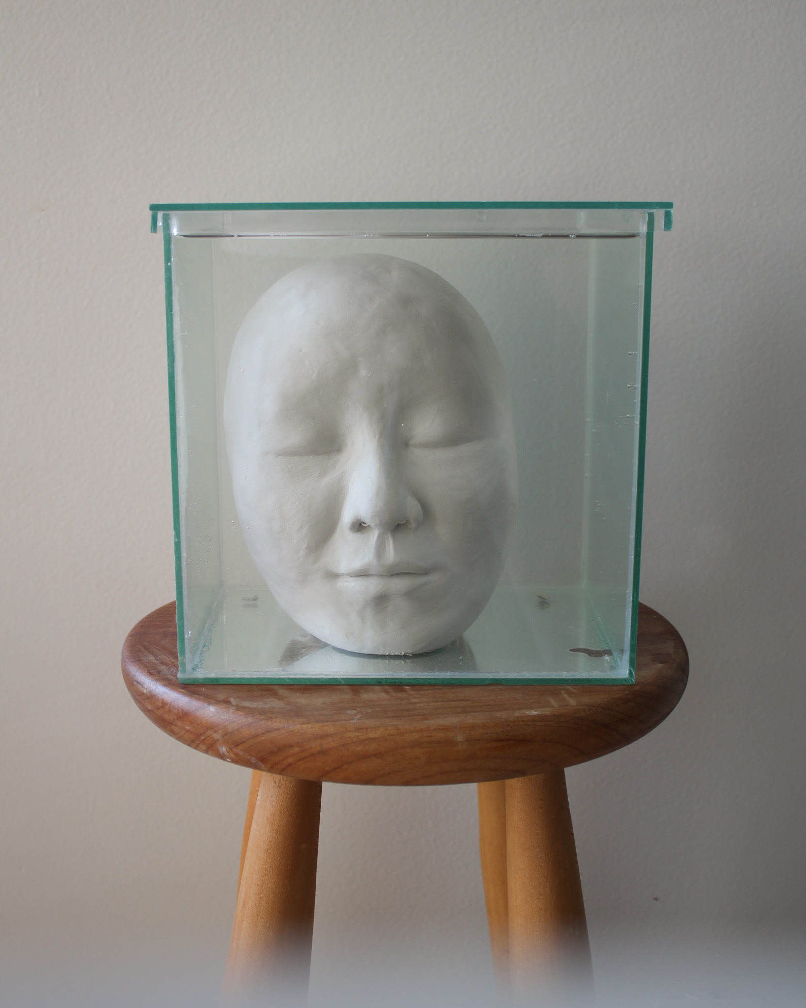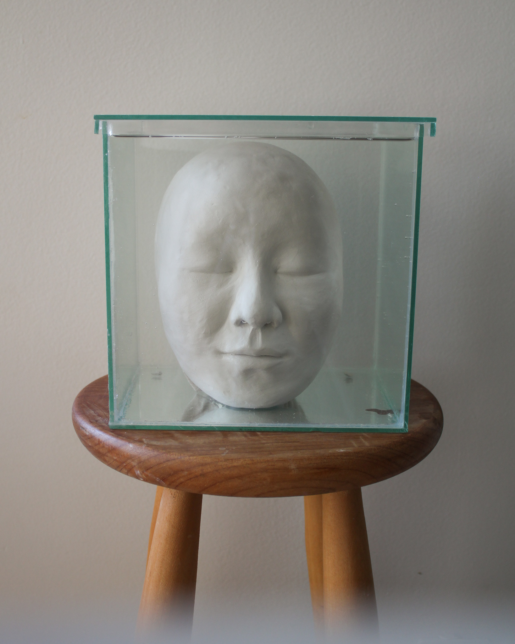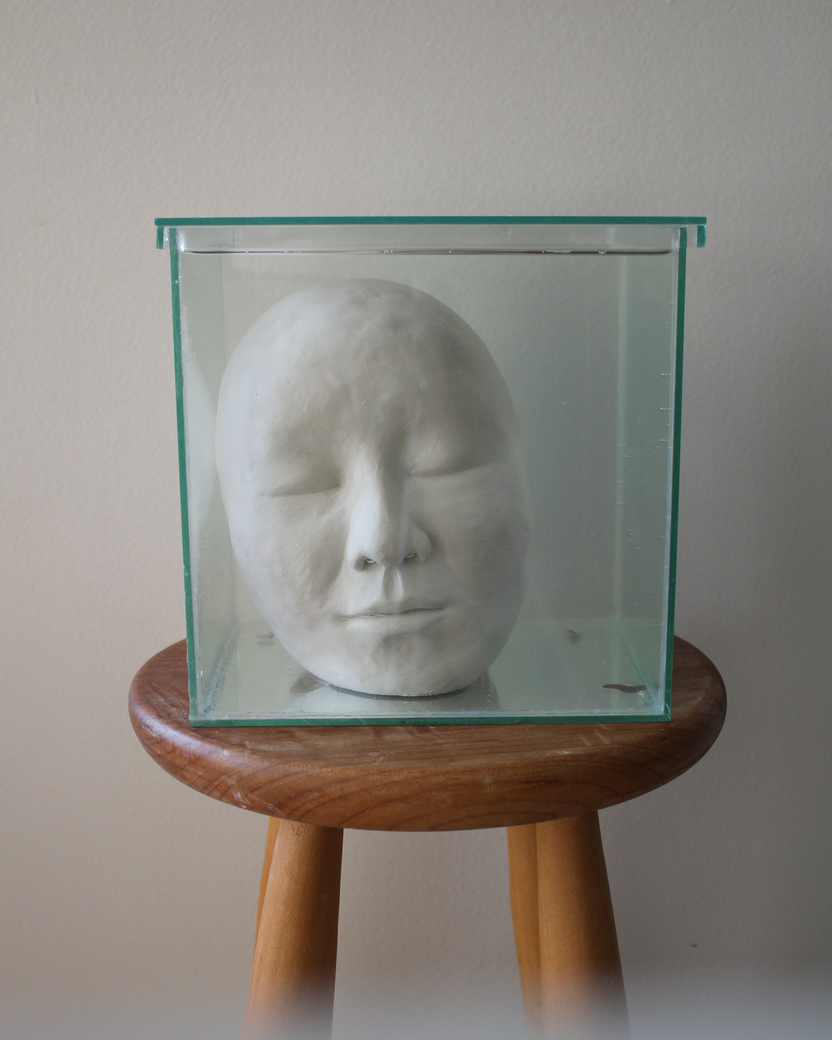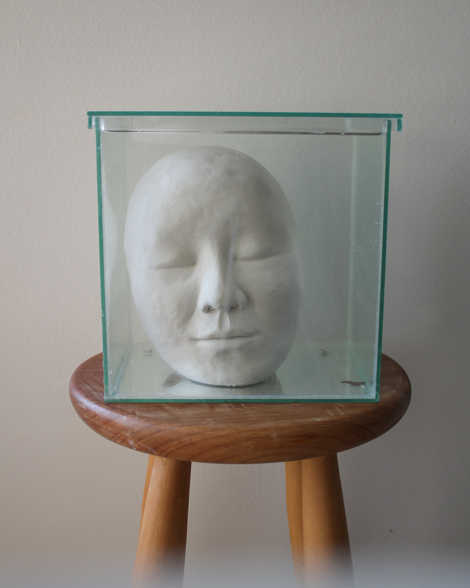 Série de fotografias realizada com registro de escultura de porcelana dissolvida em água. Caixa de vidro utilizada como recipiente. Impressão sobre canvas, 110 cm, 62 cm